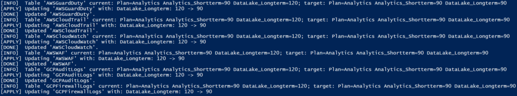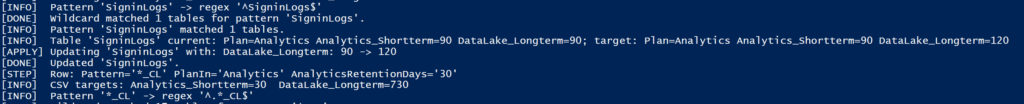 The script validates ranges, honors existing plan unless you specify, and supports a safe auto-upgrade (Analytics 30 → 90) for Sentinel tables to avoid under-retention. - Scale & safety